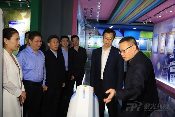 莊市長一行先參觀了聚光科技展廳,孫越總經理就公司的發展歷程、業務規劃、技術與解決方案做了介紹。