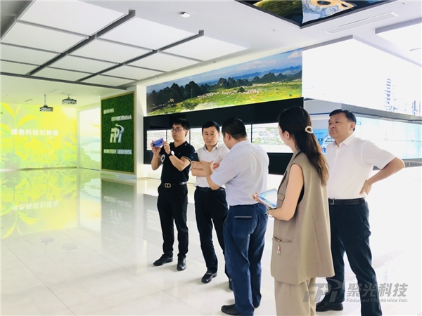 隨后郭景彬董事長一行來到公司展廳,品牌市場部經理周彤就公司發展歷程及主營業務等著重做了介紹。并講到,公司目前主營業務涉及環境與安全監測管理、環境治理、智慧水利水務、智慧實驗室等多個方面。郭景彬董事長參觀完展廳后講到,聚光科技發展到今天,離不開優秀的企業領導人的管理。同時對聚光科技的監測能力給予了贊賞。