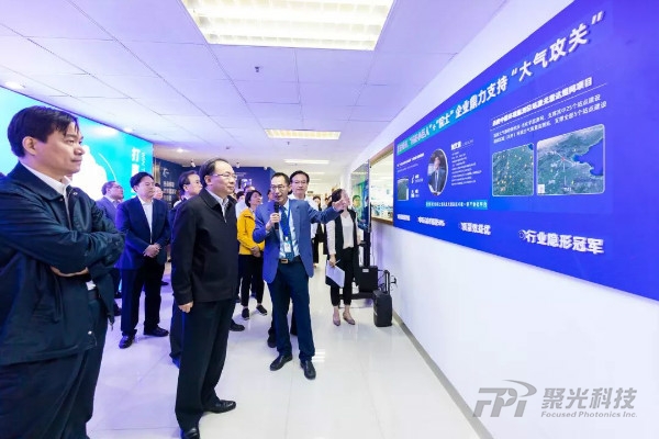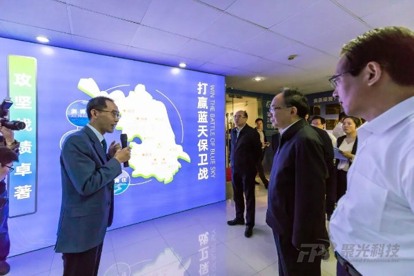 萬學平總經理向李小敏書記一行介紹中科光電支撐江蘇各地打贏藍天保衛戰所取得的成效