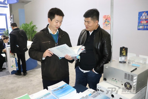 聚光科技工作人員向嘉賓介紹大氣和水環境解決方案