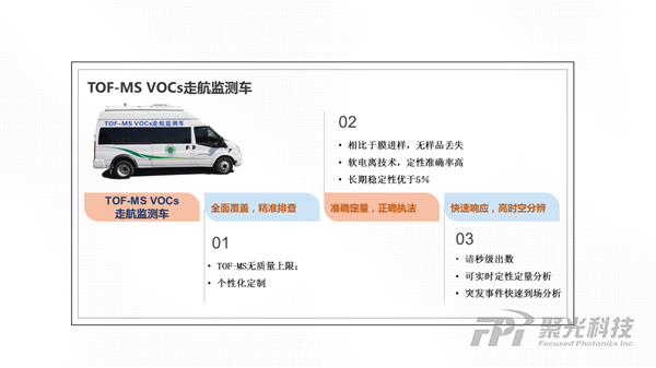 移動監測先鋒軍——TOF-MS VOCs走航監測車 高時空分辨率VOCs走航監測車系統通過對不同區域開展走航監測,可全面、快速、實時獲取整個研究區域污染全貌,精確定位重點污染企業及其內部重點污染源,可解決污染溯源,企業偷排漏排,廠界傳輸和應急監測等多個問題。