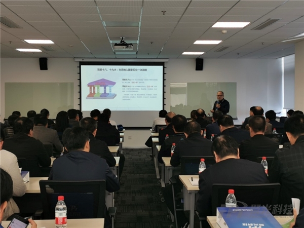 隨后,環境資源事業部副總經理尉亞飛做了《生態環境現代化“智”理》主題匯報,重點闡述了在新時代、新要求下,如何依托現代化技術提升生態環境管理和治理能力,提升城市綠色發展水平。匯報中提到,河北省作為中國鋼鐵工業第一大省,同時也是國家“2+26”重點監管城市的聚焦省份之一,找準經濟發展與生態保護的平衡點尤為重要。聚光科技立足自身技術優勢,結合河北省高質量綠色發展要求,探索出一套以“生態環境監測網”為基礎,融合“云大物智”等先進技術現代化“智”理新方案,為河北省加快推動綠色創新發展、產業轉型升級貢獻“聚光策略”。