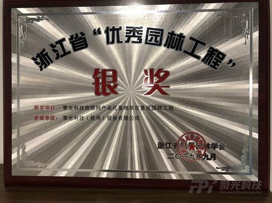 11月29日,浙江省第九屆“園林人居”論壇暨2019年度“優秀園林工程”獎頒獎大會在杭州召開。會上,聚光科技物聯網產業化基地項目景觀園林工程,榮獲2019年度浙江省“優秀園林工程”銀獎。