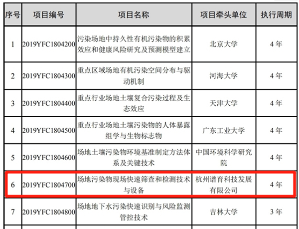 近日,由聚光科技旗下子公司杭州譜育科技發展有限公司(以下簡稱:譜育科技)牽頭,聯合中國環境監測總站、中國科學院大連化學物理研究所、中國科學院南京土壤研究所、中國科學院生態環境研究中心等9家單位共同申報“場地污染物現場快速篩查和檢測技術與設備”項目(項目編號:SQ2019YFC180103)獲國家科技部正式立項。