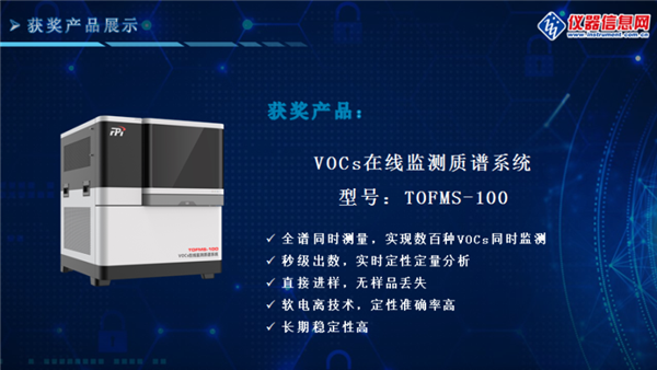聚光科技(杭州)股份有限公司(以下簡稱“聚光科技”)自主研發的TOFMS-100 VOCs在線監測質譜系統,榮獲本次“優秀新品獎”。頒獎現場,公司產品總監黃偉受邀發表獲獎感言。
