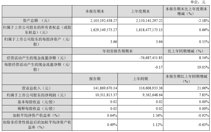 報(bao)告期(qi)(qi)內,公司(si)在抓緊實(shi)施(shi)募(mu)投項目的同(tong)時,根據市(shi)場情況,積極調整生產和銷售結構,實(shi)現了(le)營(ying)業收入、利(li)潤(run)的持(chi)續增長(chang)。報(bao)告期(qi)(qi)公司(si)營(ying)業收入實(shi)現14,186.97萬(wan)元,同(tong)比增長(chang)21.66%;實(shi)現歸屬于上(shang)市(shi)公司(si)股東的凈利(li)潤(run)為1031.18萬(wan)元,同(tong)比增長(chang)7.83%。