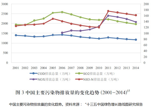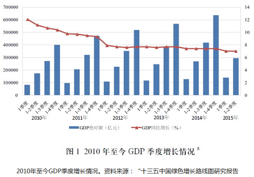研究報告稱,中國經濟在經過三十多年的持續高速增長后,開始進入增速換擋期。隨著經濟增速放緩,資源環境壓力有所緩和,但污染物排放仍居高位、能源資源利用效率仍然較低,環境質量改善與全面建設小康社會和生態文明建設的目標依然存在較大差距。在經濟保持持續增長和資源環境約束趨緊的雙重壓力下,中國在“十三五”期間面臨著十分緊迫的綠色增長需求。