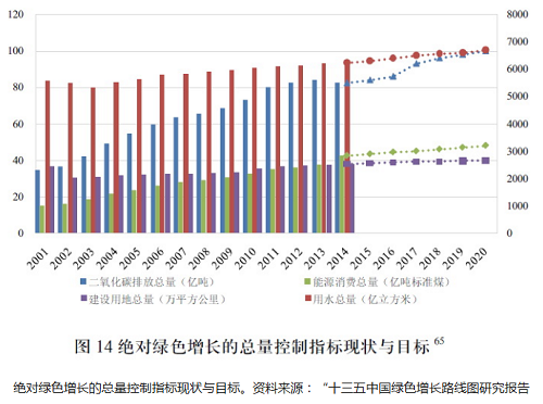 “全面的環境質量改善是中國實現綠色增長目標的最大短板和重大挑戰。”報告認為,“十三五”期間是實現絕對綠色增長面臨巨大挑戰和壓力,是實現綠色增長的攻堅期,需要通過能源資源效率提升和總量控制,雙管齊下推動綠色增長。