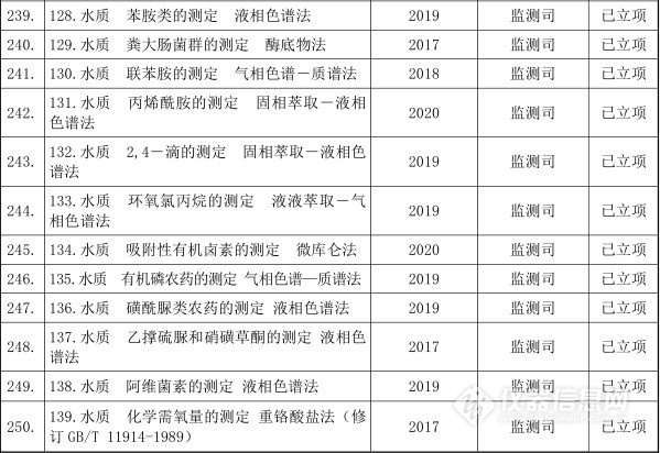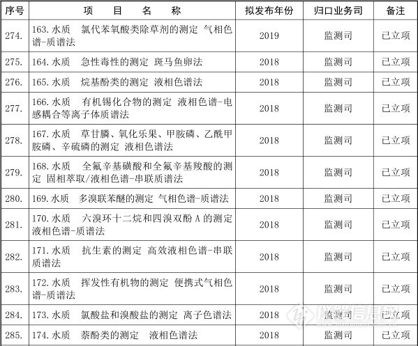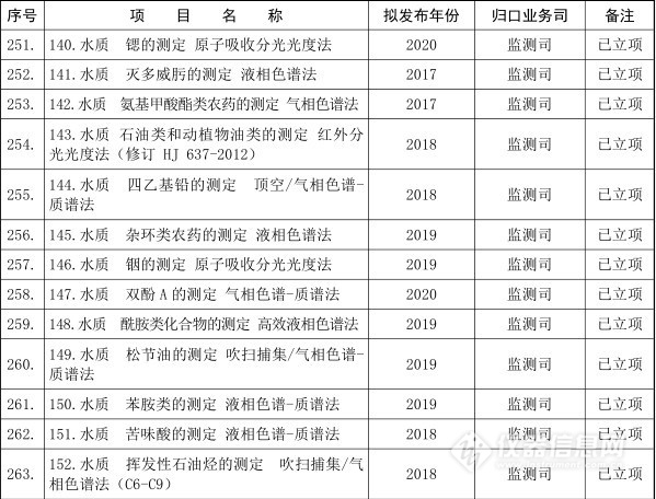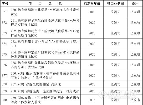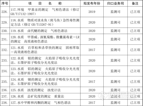 (1)環境監測分析方法標準 水環境監測分析方法標準方面,優先配套地表水環境質量標準以及城鎮污水處理廠和石油化工、農藥等污染物排放標準的制修訂與實施,制修訂相關水污染物項目監測分析方法標準。滿足履約工作需要,加快全氟辛基磺酸、多溴聯苯醚等新增持久性有機污染物(POPs)監測分析方法標準的制訂,盡快修訂石油類和動植物油類的測定標準,支持實驗室中消耗臭氧層物質—四氯化碳的淘汰。滿足新型特征污染物等環境健康危害因素監測工作需要,開展針對抗生素、二酚基丙烷(雙酚 A) 、多氯萘等新型污染物監測分析方法標準的研究制訂,提高環境風險防控和突發事件應急監測能力。制訂一批反映水生生物急性毒性、慢性毒性以及致突變性的監測分析方法標準,配套水環境綜合毒性評價體系的建立,健全生物類監測分析方法標準制修訂技術方法體系。