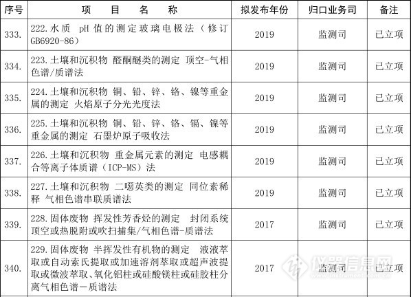 土壤及固體廢物環境監測分析方法標準方面,配套土壤環境質量標準的修訂,土壤環境調查工作以及典型污染場地環境風險評估工作的需求,結合先進大型分析儀器和快速分析方法的推廣和普及使用,制修訂一批涉及土壤基本理化指標以及重金屬、多環芳烴、石油烴、農藥等有毒有害污染物的監測分析方法標準。配套危險廢物鑒別標準、固體廢物共處置污染控制標準等的實施,制修訂相關固體廢物監測分析方法標準。