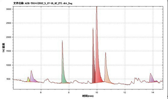 圖1. 采樣點1處空氣樣本的GCMS總(zong)離子流圖