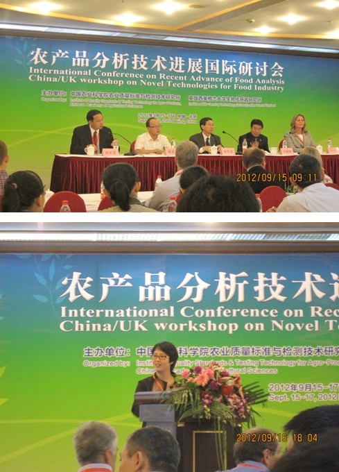 2012年9月(yue)15日-17日,由(you)中(zhong)國農業科(ke)學(xue)院農業質量標準與(yu)檢(jian)測技術(shu)研(yan)(yan)究(jiu)(jiu)所和(he)英國西英格蘭大學(xue)生物傳(chuan)感器研(yan)(yan)究(jiu)(jiu)所聯合(he)主(zhu)辦單位的(de)“農產(chan)品(pin)分析技術(shu)進展國際研(yan)(yan)討(tao)會”在京順利召開。來自國內外約120名(ming)專家學(xue)者就優質農產(chan)品(pin)溯源、真偽識(shi)別、食(shi)品(pin)快速(su)/在線分析技術(shu)以(yi)及(ji)食(shi)品(pin)安(an)全檢(jian)測新技術(shu)的(de)應(ying)用進行(xing)了(le)熱烈研(yan)(yan)討(tao),探討(tao)了(le)農產(chan)品(pin)中(zhong)獸藥殘(can)留、農藥殘(can)留、生物毒素、致病菌等(deng)有毒有害物質的(de)檢(jian)測分析技術(shu)及(ji)研(yan)(yan)究(jiu)(jiu)進展。