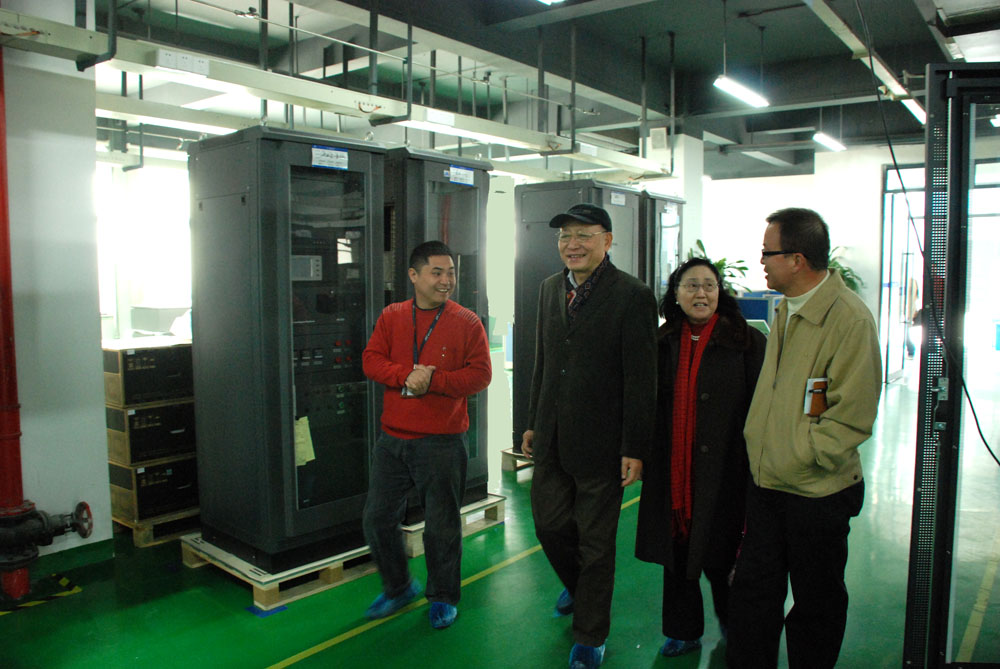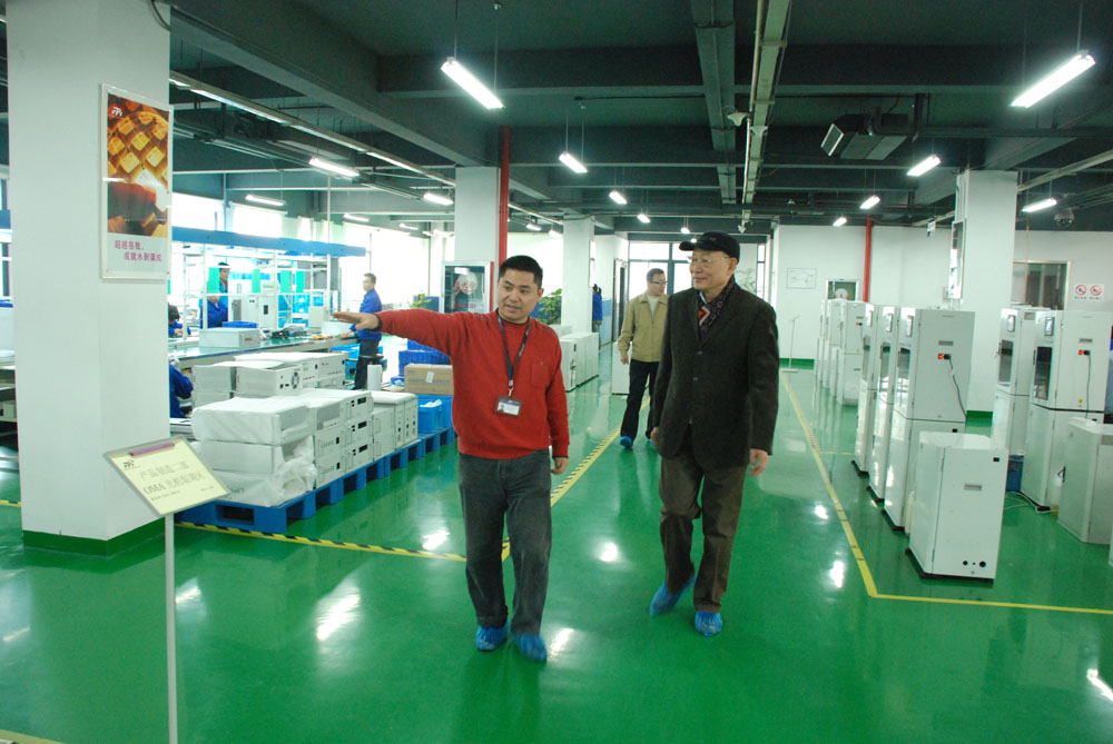 聚光科(ke)技(ji)董事長王(wang)健陪(pei)同金國藩(fan)院士參觀(guan)公(gong)司生產(chan)車間(jian)。