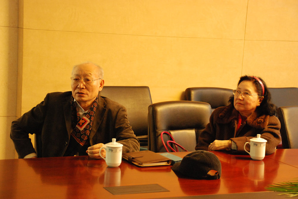 金國藩院(yuan)士與夫人聽取王健董事長(chang)關于聚光(guang)科技的相關介紹。
