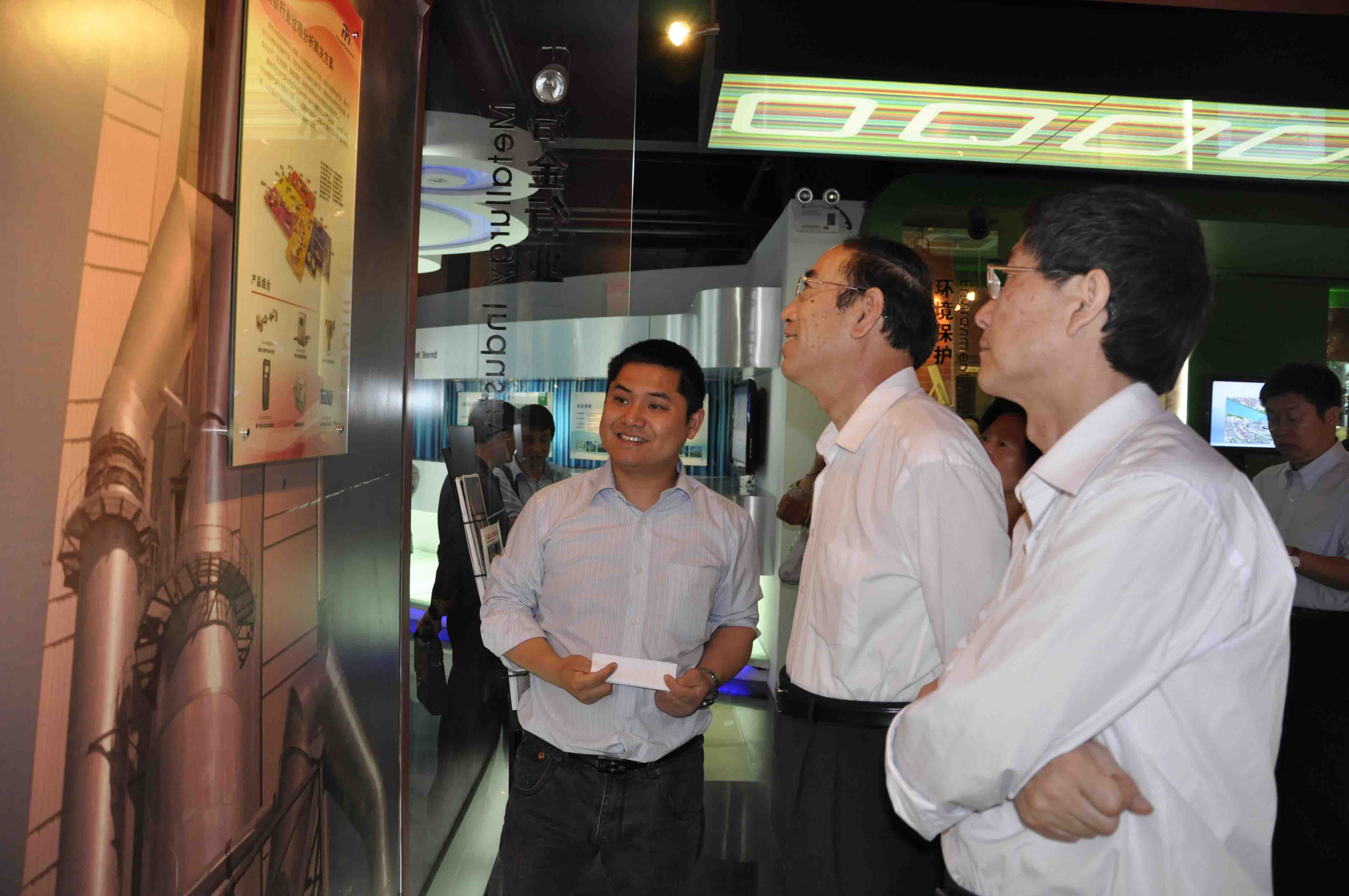 董事長(chang)王健陪同王景川會(hui)長(chang)參觀聚光(guang)科技(ji)產品展廳