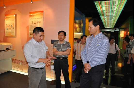 董事(shi)長王健陪同謝力(li)群(qun)一行(xing)參觀聚光科技(ji)產(chan)品展廳