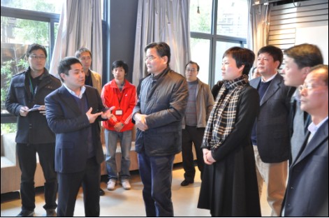 在聚光科技,邵占維參觀了公司展廳,并聽取了公司董事長王健關于公司通過自主創新取得的成就及公司物聯網產業發展情況和發展規劃等內容的匯報。