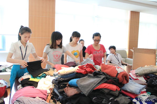 5月24日活動正式開始,前(qian)來獻愛心(xin)的(de)(de)員工(gong)源源不(bu)斷(duan),希望能(neng)夠(gou)為貧困地(di)區的(de)(de)兒童盡自己的(de)(de)綿薄之力。經(jing)過短(duan)短(duan)的(de)(de)一個多小(xiao)時,共捐(juan)得衣(yi)物300余(yu)件,文具用品4000余(yu)件,書籍50余(yu)本。活動結束(shu)后,為了不(bu)耽(dan)誤衣(yi)物的(de)(de)運送,工(gong)作人(ren)員更是忙的(de)(de)熱火朝天(tian),他(ta)們將(jiang)堆如“小(xiao)山”似(si)的(de)(de)衣(yi)物認真仔(zi)細地(di)整理、打包,并做好(hao)標注。