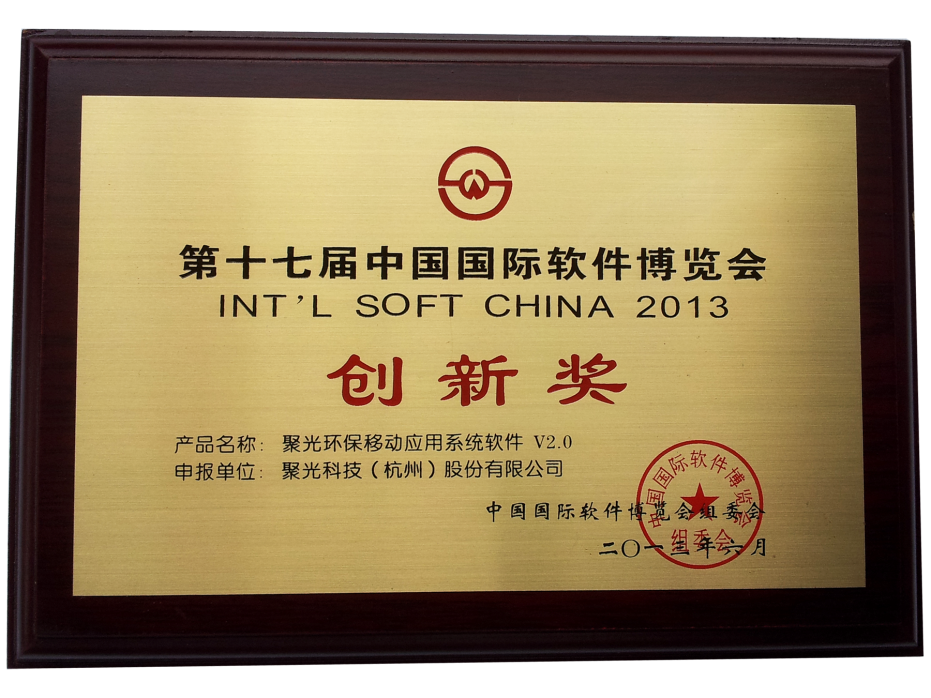圖二、聚光環保移動應用系統喜獲第十七屆中國國際軟件博覽會創新獎