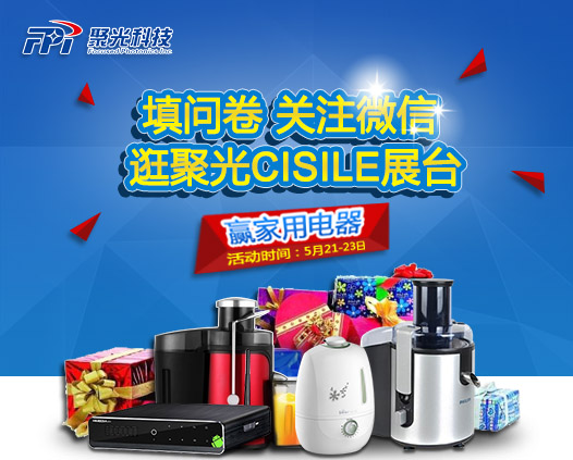 每天下(xia)午2點現場進行(xing)抽獎,填問卷并關注聚光科技微信者,均(jun)有機會贏取精美(mei)家用電(dian)器!