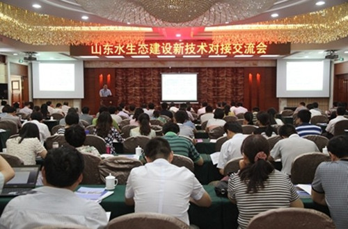 5月29日,由水利部科技推廣中心主辦,山東省水利勘測設計院、山東省水利科學研究院承辦的山東水生態建設新技術對接會在泉城濟南順利召開。此次對接會吸引了山東省水利廳科外處、廳直有關部門和單位、山東省14個地市和所屬縣市區水利局、勘測設計單位有關領導和技術負責人以及水利專家、企業廠商等150余位代表參加。水利廳科外處張曼志處長、張長江副處長親臨會議并作指導。