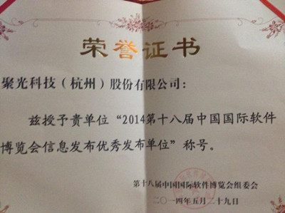 在上屆軟博會上,聚光“污染排放過程(工況)監控系統”榮獲“金獎”,“環保移動應用系統軟件”榮獲“創新獎”。希望借此軟件行業盛會的機會,逐步推動聚光在新行業內的聲譽傳播,讓相關政府部門和我們的用戶更多地了解到聚光不只是做環保硬件的公司,在環保軟件的開發和應用上也很有實力!