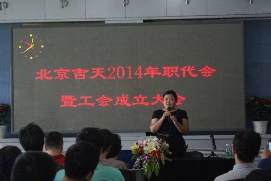 北京吉天總經理彭華代表公司領導發言,對工會的成立表示祝賀,并承諾公司一定會全力支持工會的各項活動,共謀企業健康發展。