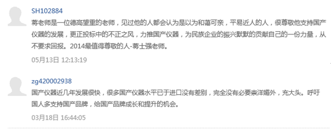 從行(xing)業專(zhuan)家學者(zhe)對使用(yong)國產儀(yi)器的呼吁(yu)和網友們的忠懇(ken)評價,不(bu)難看出,國產儀(yi)器的發(fa)展(zhan)已經到了(le)一定(ding)的水平,完(wan)全能滿足用(yong)戶的需(xu)求(qiu),需(xu)要為國產儀(yi)器正(zheng)名,需(xu)要多給國產儀(yi)器一些(xie)機會來證明自己,希望國人(ren)團結起來為國產儀(yi)器的發(fa)展(zhan)奉獻自己的力量。