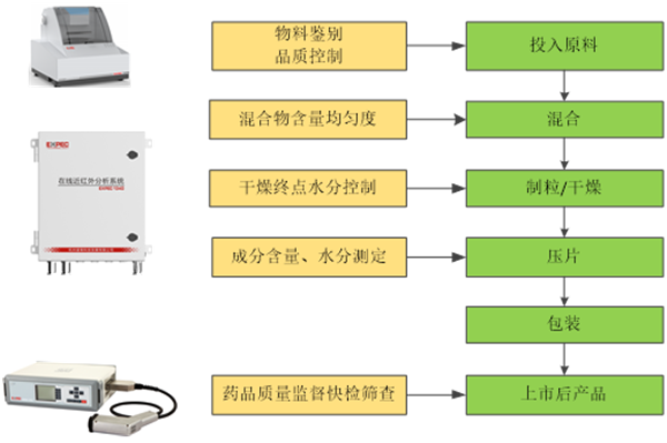 在(zai)(zai)制藥過程中(zhong),先采用臺式近(jin)紅(hong)外(wai)(wai)(wai)光譜分(fen)(fen)(fen)析儀對于進(jin)廠原(yuan)料質(zhi)控,投料原(yuan)料的(de)鑒別分(fen)(fen)(fen)析,從源頭檢測把控;生(sheng)產中(zhong)混合均勻度的(de)在(zai)(zai)線(xian)(xian)判斷(duan),干燥過程中(zhong)水分(fen)(fen)(fen)的(de)在(zai)(zai)線(xian)(xian)監測,采用在(zai)(zai)線(xian)(xian)近(jin)紅(hong)外(wai)(wai)(wai)分(fen)(fen)(fen)析儀進(jin)行(xing)監測;最(zui)后采用便攜(xie)近(jin)紅(hong)外(wai)(wai)(wai)可對市場(chang)通中(zhong)藥品進(jin)行(xing)質(zhi)量(liang)監督快(kuai)速篩查,從點到面,全過程保障(zhang)藥品質(zhi)量(liang)。