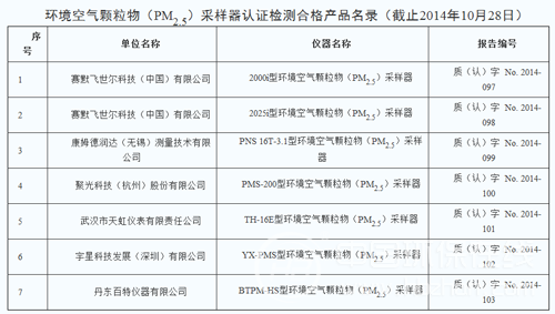 環境空氣顆粒物(PM2.5)采樣器認證檢測合格產品名錄(來源中國環境監測總站)