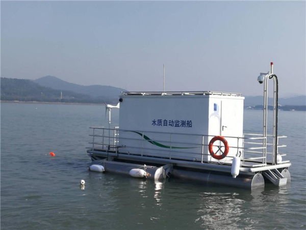 水(shui)質監(jian)測(ce)浮船由(you)(you)船體(船身、船艙)、儀表分(fen)(fen)析單(dan)(dan)(dan)元(yuan)(yuan)(yuan)、取水(shui)單(dan)(dan)(dan)元(yuan)(yuan)(yuan)、配水(shui)單(dan)(dan)(dan)元(yuan)(yuan)(yuan)、預處理單(dan)(dan)(dan)元(yuan)(yuan)(yuan)、輔(fu)助單(dan)(dan)(dan)元(yuan)(yuan)(yuan)、視頻(pin)監(jian)控(kong)單(dan)(dan)(dan)元(yuan)(yuan)(yuan)、系(xi)(xi)統(tong)(tong)(tong)(tong)供(gong)電單(dan)(dan)(dan)元(yuan)(yuan)(yuan)、控(kong)制(zhi)(zhi)系(xi)(xi)統(tong)(tong)(tong)(tong)與數(shu)據采(cai)集/處理/傳輸系(xi)(xi)統(tong)(tong)(tong)(tong)等(deng)(deng)組成(cheng)。其中儀表分(fen)(fen)析單(dan)(dan)(dan)元(yuan)(yuan)(yuan)由(you)(you)五參數(shu)在(zai)線分(fen)(fen)析儀、高錳酸(suan)鹽指數(shu)在(zai)線分(fen)(fen)析儀、氨(an)氮在(zai)線分(fen)(fen)析儀、總磷在(zai)線分(fen)(fen)析儀、總氮在(zai)線分(fen)(fen)析儀、葉綠(lv)素、藻密度等(deng)(deng)組成(cheng);系(xi)(xi)統(tong)(tong)(tong)(tong)泵閥及(ji)輔(fu)助設備(bei)由(you)(you)PLC控(kong)制(zhi)(zhi)系(xi)(xi)統(tong)(tong)(tong)(tong)統(tong)(tong)(tong)(tong)一(yi)進行(xing)控(kong)制(zhi)(zhi);各儀表數(shu)據經RS 232 / RS 485接口由(you)(you)數(shu)采(cai)工控(kong)設備(bei)進行(xing)統(tong)(tong)(tong)(tong)一(yi)數(shu)據采(cai)集和(he)處理,系(xi)(xi)統(tong)(tong)(tong)(tong)數(shu)據采(cai)用無線傳輸模式。系(xi)(xi)統(tong)(tong)(tong)(tong)采(cai)用太陽能供(gong)電,可保證連續陰雨天情況下系(xi)(xi)統(tong)(tong)(tong)(tong)穩定運行(xing)15天以(yi)上。