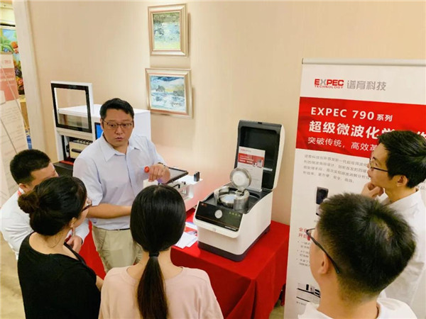 亮相本次會議的GC/LC-TQMS、超(chao)級微(wei)波化學(xue)工(gong)作站、減壓平行濃縮儀(yi)(yi)(yi)、加壓液(ye)體萃(cui)取(qu)儀(yi)(yi)(yi)等(deng)儀(yi)(yi)(yi)器引強勢圍(wei)觀(guan),譜(pu)育(yu)科技(ji)技(ji)術工(gong)程師通過儀(yi)(yi)(yi)器介紹、現場(chang)答疑等(deng)形式與現場(chang)嘉賓開展交(jiao)流,解答了行業(ye)的應用困惑(huo)。