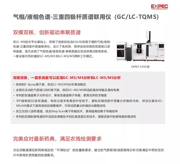 面對越(yue)來越(yue)多(duo)的食品(pin)農(nong)(nong)獸殘、中藥農(nong)(nong)殘檢(jian)測需求,譜育(yu)科技推出了基于三重四極桿質(zhi)譜聯用儀(GC-MS/MS、LC-MS/MS、GC/LC-TQMS等)的應對解決方(fang)案(an),推動食品(pin)藥品(pin)檢(jian)驗檢(jian)測能力(li)和技術支撐能力(li)提升(sheng),構筑牢固的檢(jian)測防護線保障(zhang)舌尖上的安全。