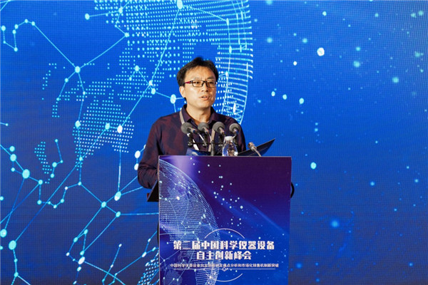譜育科技總經理 韓雙來 致辭,此次峰會通過行業交流促進中國科學儀器自主創新與發展,更重要的是要讓國內其他上下游企業、科研院所、專業機構了解中國科學儀器創新情況,中國科學儀器已在一定程度上實現國產替代。