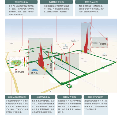 雙通道走航(hang)質譜監(jian)測(ce)系(xi)統有常規例行走航(hang)、督察性巡查(cha)走航(hang)、聯合執法走航(hang)、固定(ding)站點連(lian)續監(jian)測(ce)、應急事故走航(hang)、居民投訴走航(hang)、重污(wu)染天氣(qi)走航(hang)七(qi)大應用(yong)模式。