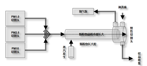 基(ji)于(yu)經典的(de)顆(ke)粒物晶核冷(leng)凝長大(da)原理(li)的(de)SIPS(Steam Impact Particulate Sampler)采樣技術示意圖