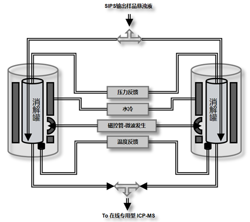雙通道切換式在(zai)線(xian)微波消解技(ji)術的原(yuan)理示意圖