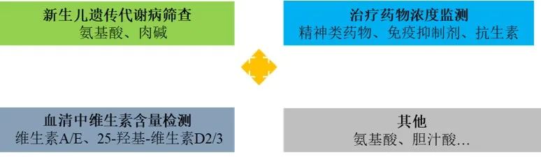 目(mu)前(qian),EXPEC 5210 在(zai)臨床診斷領(ling)域得(de)到了(le)廣泛的(de)應(ying)用測試,包括新生(sheng)兒(er)遺傳代謝病篩(shai)查、治療藥(yao)物濃度監測、維生(sheng)素含量檢測等。