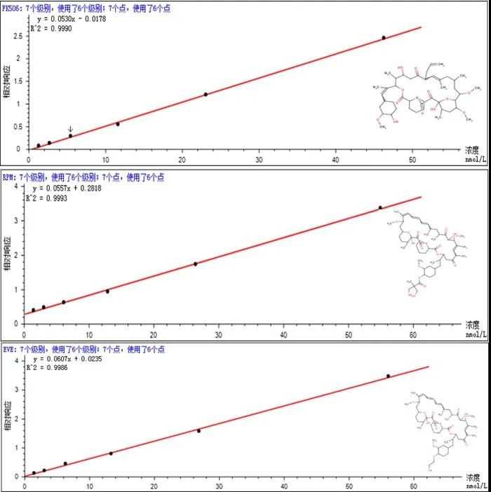 免(mian)疫(yi)抑(yi)制劑(ji)(ji)因其治療(liao)(liao)窗窄,在(zai)臨床(chuang)應用中(zhong)需進(jin)行治療(liao)(liao)藥物監(jian)測(ce),所(suo)測(ce)值作為臨床(chuang)評價療(liao)(liao)效及毒副反應的(de)指標。傳統免(mian)疫(yi)學(xue)方法進(jin)行血藥濃度(du)(du)監(jian)測(ce)時特異性較差(cha),不能完全區分免(mian)疫(yi)抑(yi)制劑(ji)(ji)與其代謝物;再者,其較大(da)的(de)分子量也加大(da)了監(jian)測(ce)難度(du)(du)。EXPEC 5210可實現3min內完成3種(zhong)免(mian)疫(yi)抑(yi)制劑(ji)(ji)——他(ta)克莫司、西羅莫司、依維(wei)莫司的(de)濃度(du)(du)監(jian)測(ce),線性、重復(fu)性良好。