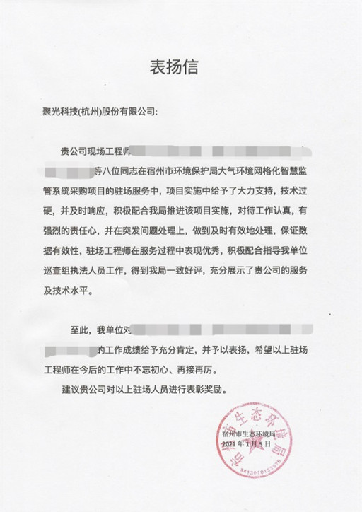 保障機制:建立以基層網格為單元的網格分級、部門聯動機制,保障壓力傳導,責任下沉;以及日常研判會商、報警溯源、巡查督查等工作機制,利用綜合立體監測技術和人工管理相結合的方式,實現“監測全覆蓋、管理無死角、監察無盲區”,為宿州市區域空氣質量持續改善提供有力保障。