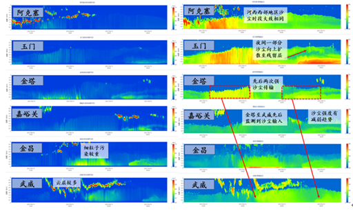 由此次(ci)沙塵天氣為例,從上圖可以看出,4月14日(ri)-15日(ri),河西地區先后(hou)經歷了兩次(ci)沙塵傳(chuan)輸過程。