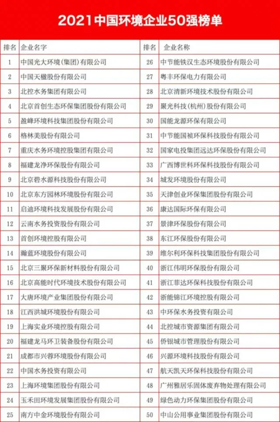 2021年7月8日,全國工商聯環境商會正式發布“2021中國環境企業50強榜單”,光大環境、中國天楹、北控水務位居前三動搖。本次更值得關注的是,聚光科(ke)技(杭州)股份有限公司以排名第29位的好成績榮登2021中(zhong)國(guo)環(huan)境(jing)企業50強榜(bang)單!