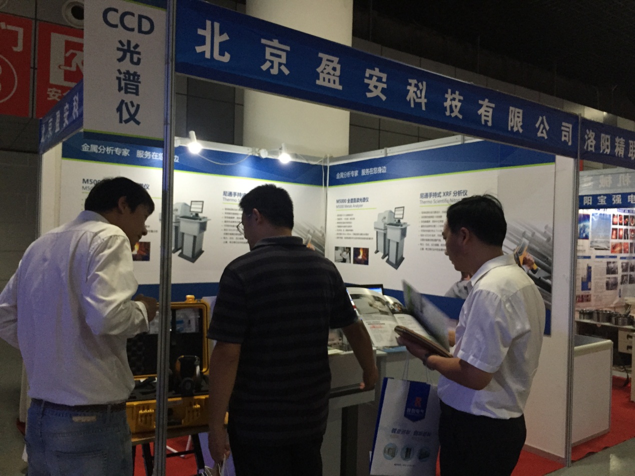 2015年9月10-12日,北京盈安科技有限(xian)公司攜中國(guo)首創(chuang)CCD全譜(pu)(pu)直讀光(guang)譜(pu)(pu)儀——M5000全譜(pu)(pu)直讀光(guang)譜(pu)(pu)儀,在河南洛陽舉辦的(de)”第三屆洛陽工業(裝備(bei))博覽會(hui)暨采(cai)購商大(da)會(hui)“上亮相。