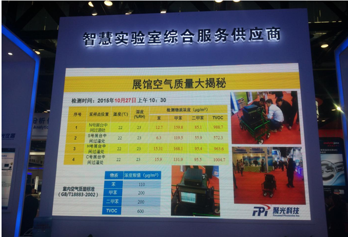 2015 BCEIA展(zhan)(zhan)(zhan)會已開展(zhan)(zhan)(zhan)了兩天(tian),由于(yu)展(zhan)(zhan)(zhan)館搭建(jian)時間非(fei)常緊迫,各種(zhong)裝修(xiu)材料中散發(fa)的有(you)機物質(zhi)都來不(bu)及散發(fa),直接污染展(zhan)(zhan)(zhan)館中的空(kong)氣,對(dui)人(ren)體產生(sheng)一定的危(wei)害。這兩天(tian),聚光科(ke)技(ji)(杭(hang)州)股(gu)份有(you)限公司(si)的檢(jian)(jian)測(ce)(ce)小組帶著公司(si)自主(zhu)(zhu)研發(fa)生(sheng)產的便攜(xie)式(shi)氣質(zhi)聯用儀,在本次展(zhan)(zhan)(zhan)會主(zhu)(zhu)場館的不(bu)同位置對(dui)室內(nei)空(kong)氣中的揮發(fa)性有(you)機物進行了現場檢(jian)(jian)測(ce)(ce)。檢(jian)(jian)測(ce)(ce)物質(zhi)參(can)考室內(nei)空(kong)氣質(zhi)量標準(GB/T18883-2002),主(zhu)(zhu)要為苯(ben)、甲苯(ben)、二甲苯(ben)和TVOC等(deng)幾項(xiang)主(zhu)(zhu)要污染有(you)機物。
