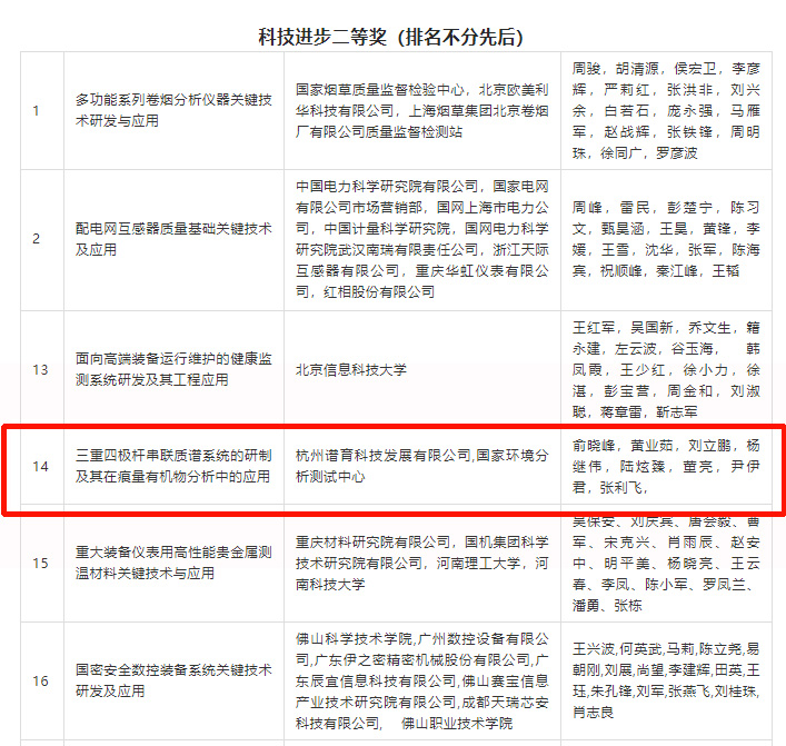杭州譜育(yu)科(ke)技(ji)發展有(you)限公司和國家環境分析測試中(zhong)心共同完成的《三重(zhong)四極(ji)桿串聯質譜系統的研制及其在痕(hen)量有(you)機物(wu)分析中(zhong)的應用》榮(rong)獲2021年度中(zhong)國儀(yi)器儀(yi)表學會科(ke)學技(ji)術(shu)獎二等獎!