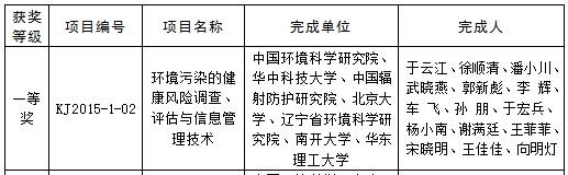 2015年12月15日,環保部發布了2015年度環境保護科學技術獎獲獎項目的公告。根據《環境保護科學技術獎勵辦法》的規定,經各地、各部門推薦和專家評審,并通過《中國環境報》及環境保護部門戶網站公示,環境保護科學技術獎勵委員會批準63個項目獲2015年度環境保護科學技術獎,其中:一等獎6項,二等獎24項,三等獎31項,科普類獎2項。