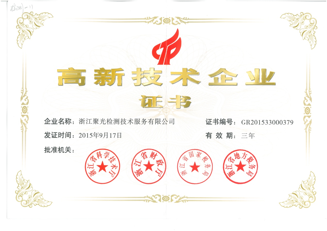 近日,根據《高新技術企業認定管理辦法》(國科發火〔2008〕172號)和《高新技術企業認定管理工作指引》(國科發火〔2008〕362號)有關規定,經地方認定工作辦公室初審和專家審查等程序,浙江省科學技術廳發布了“關于浙江省2015年擬認定高新技術企業公示”,聚光科技子公司浙江聚光檢測技術服務有限公司位列其中。