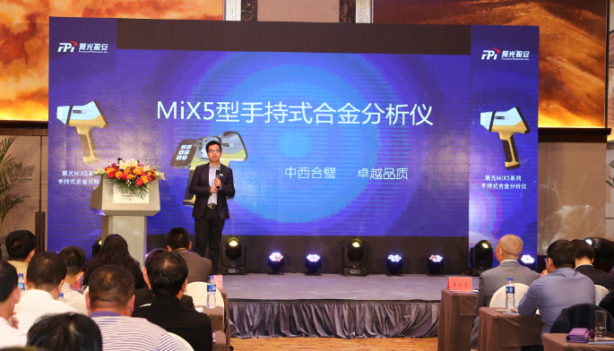 聚光盈安產品應用經理謝爽先生對該儀器的特點及產品性能進行了詳細的介紹:“聚光MiX5系列手持式合金分析儀”能快速、精確及無損的分析多種材質,在1-2秒即可判定金屬牌號。擁有優秀的人性化設計,是目前業內體積最緊湊的手持式XRF產品。儀器小巧輕便、簡單易用,同時還具備強大的功能和穩定的性能。可以應用在現場材料鑒別、機械加工、廢舊金屬回收、鍍層測厚、貴金屬檢測等多個方面。聚光MiX5系列手持式合金分析儀有500型、600型、900型多種型號可供選擇,滿足用戶的各種分析與預算需求。